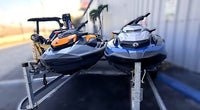 Set of Two Jet Skis: 2022 Sea Doo GTI 170 HP & 2020 Sea Doo GTX 230 w/ Galvanized Double Trailer